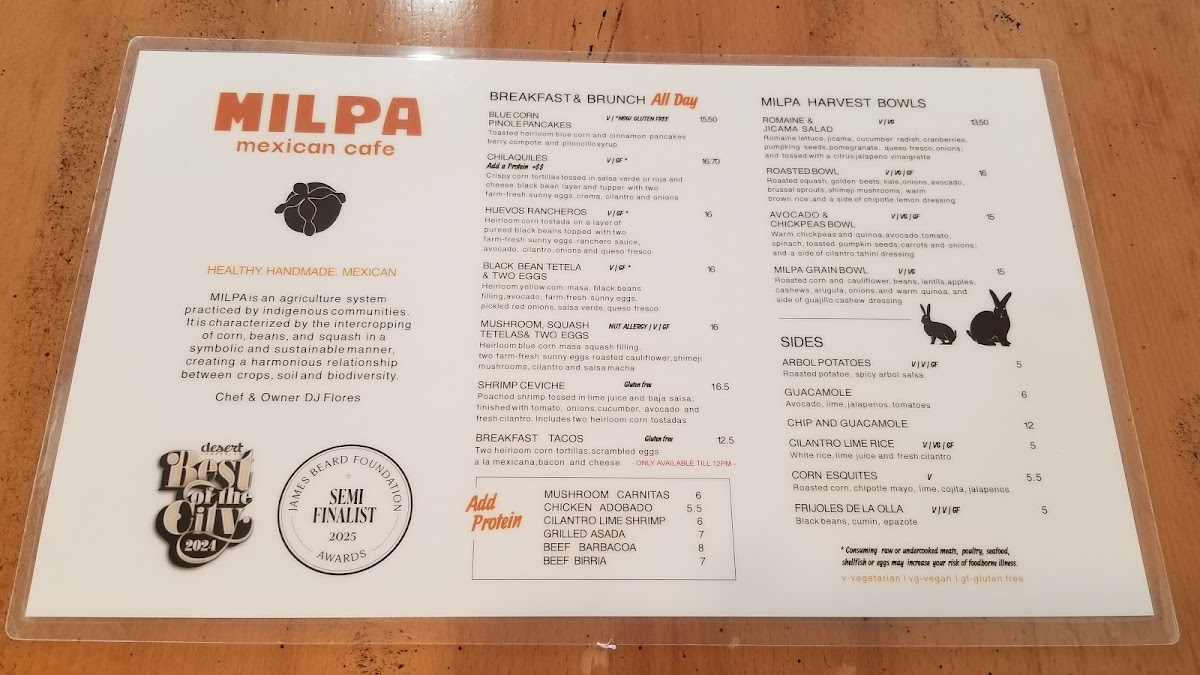 Milpa’s menu offers a welcoming mix of hearty Mexican dishes and thoughtful café bites, perfect for casual dining any time of day. Whether you're stopping by for a relaxed brunch or a comforting lunch, you’ll find options that feel both familiar and carefully crafted.