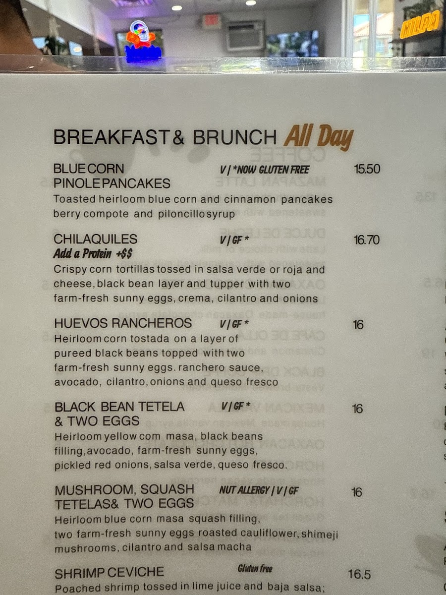 The menu includes savory highlights like chilaquiles verdes and an array of tacos featuring tender barbacoa or flavorful shrimp, alongside fresh salads and grain bowls that balance vibrant ingredients with satisfying textures. For a sweeter touch, the café side features treats like conchas and blue corn pinole pancakes, ideal for a thoughtful pause with a warm mazapan latte or a crisp michelada on a sunny afternoon.